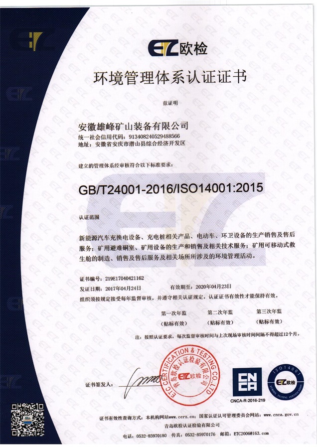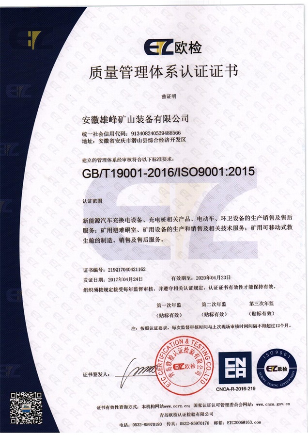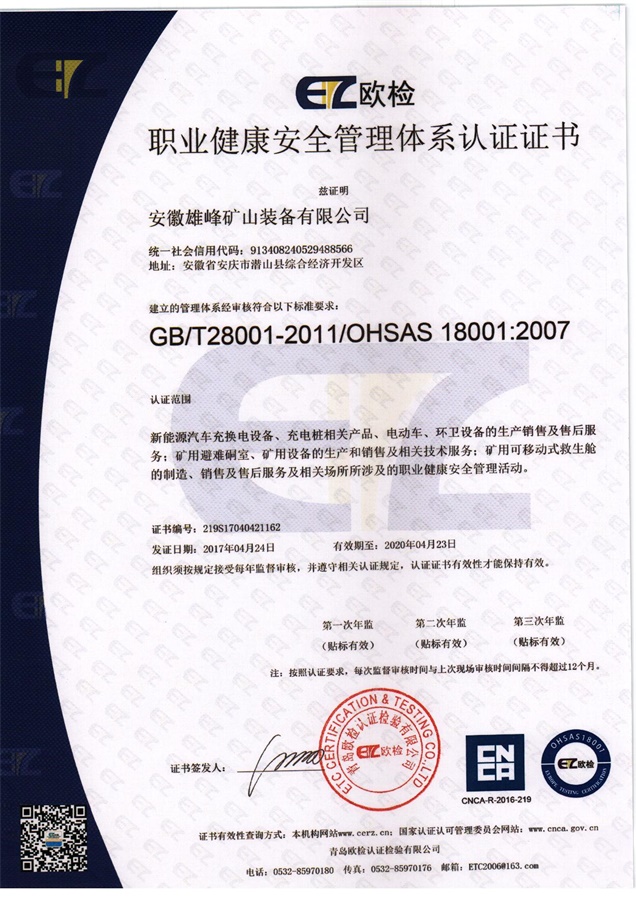 安徽天柱雄峰機(jī)電有限公司隸屬于安徽雄峰集團(tuán),公司座落在國家5A級風(fēng)景名勝區(qū)--天柱山腳下,是一家專業(yè)從事研發(fā)、生產(chǎn)、銷售礦山機(jī)械、礦用安全設(shè)備、機(jī)電設(shè)備及國際貿(mào)易的現(xiàn)代高新技術(shù)企業(yè)。公司被評定為國家科技部創(chuàng)新基金項目和國債項目重點支持單位、安徽省優(yōu)秀創(chuàng)新型企業(yè)。公司擁有省級企業(yè)技術(shù)中心和2個研究所,并與中國電子科技集團(tuán)合肥38研究所建立戰(zhàn)略合作關(guān)系。公司引用中國航天技術(shù),研發(fā)生產(chǎn)的礦用可移動式救生艙和避難硐室可以在礦井發(fā)送事故后,為無法及時撤離的礦工提供安全的避難和等待救援的場所。該產(chǎn)品經(jīng)過模擬災(zāi)變環(huán)境下真人106小時的生存試驗、高溫試驗、爆炸試驗等環(huán)節(jié)的檢測,已取得國家礦用產(chǎn)品安全標(biāo)志證書,具備國際領(lǐng)先技術(shù);且已取得專利23項,其中兩項發(fā)明專利(大型密閉門新型專利、逃生裝置新型專利)。公司秉承“誠信贏得市場,創(chuàng)新引領(lǐng)未來”的經(jīng)營理念,在“瞄準(zhǔn)高精尖,面向全球化”的發(fā)展戰(zhàn)略指導(dǎo)下,依托雄厚的科技力量和人才優(yōu)勢,致力打造一流的礦用安全裝備,保障礦工生命安全,共建人類幸福家園!